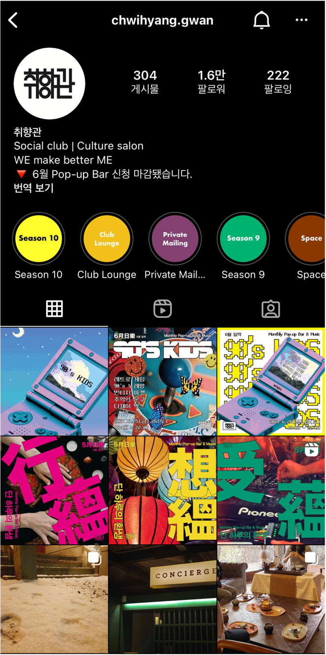 5️⃣ 취향관 - 소셜 살롱 @chwihyang.gwan
