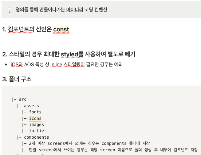 마이너리 코딩 컨벤션 마이너리를 개발할 때 지키기로 한 코딩 컨벤션 중 일부에요.
