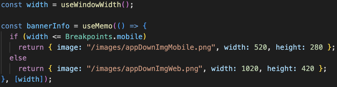 현재 사용중인 기기에 따라 사용되는 배너와 크기에 대해 정의한 함수에요.