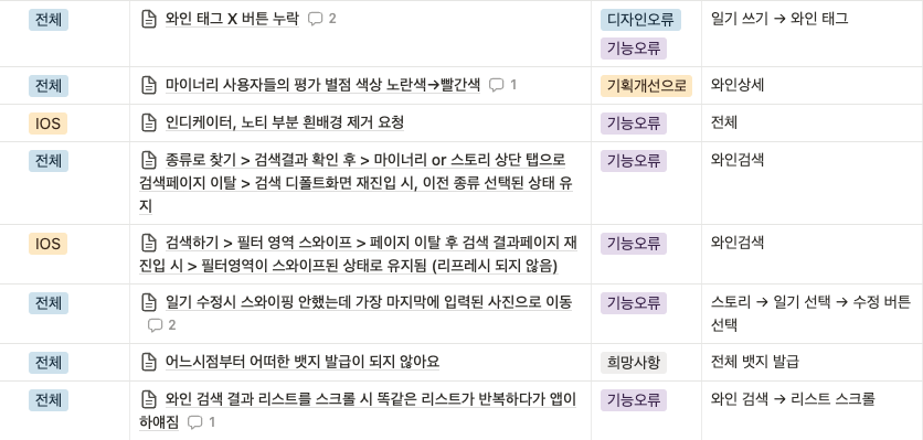 마이너리 앱 QA 리스트 중 일부 마이너리 앱에 대해서는 끊임없이 QA를 진행하고 있어요!